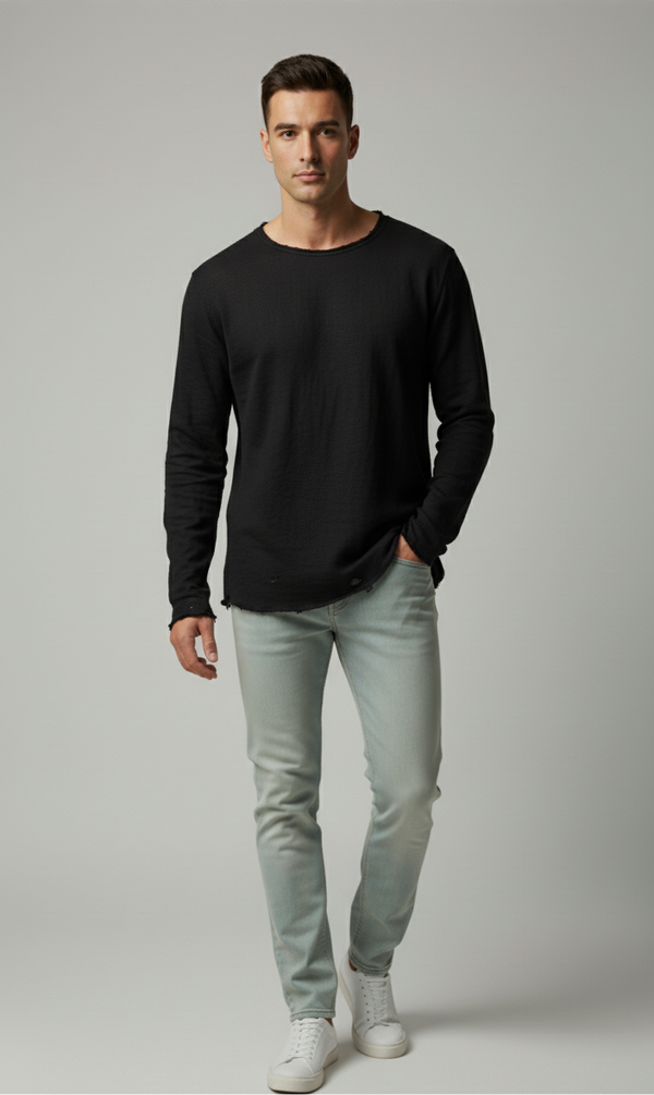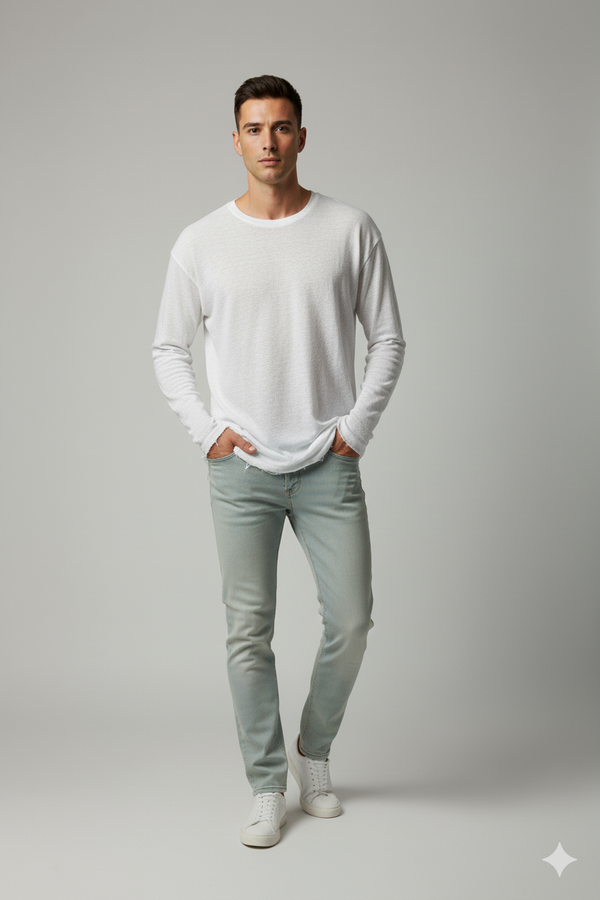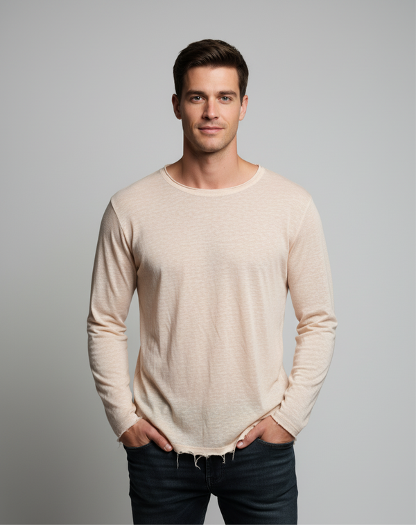 חולצת פשתן פרמיום ירוק זית ללא קרעים